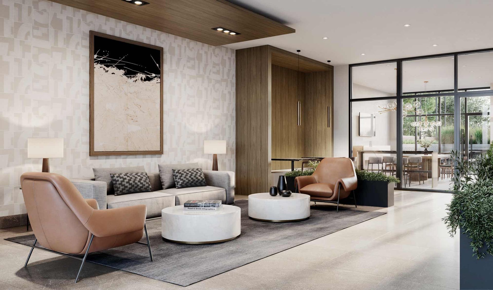 - Indoor lounge with dining/meeting area