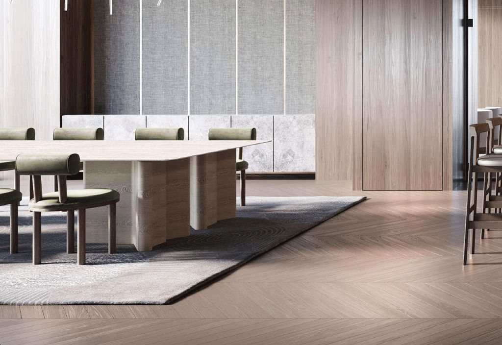 - Engineered oak hardwood floors (plank pattern)
