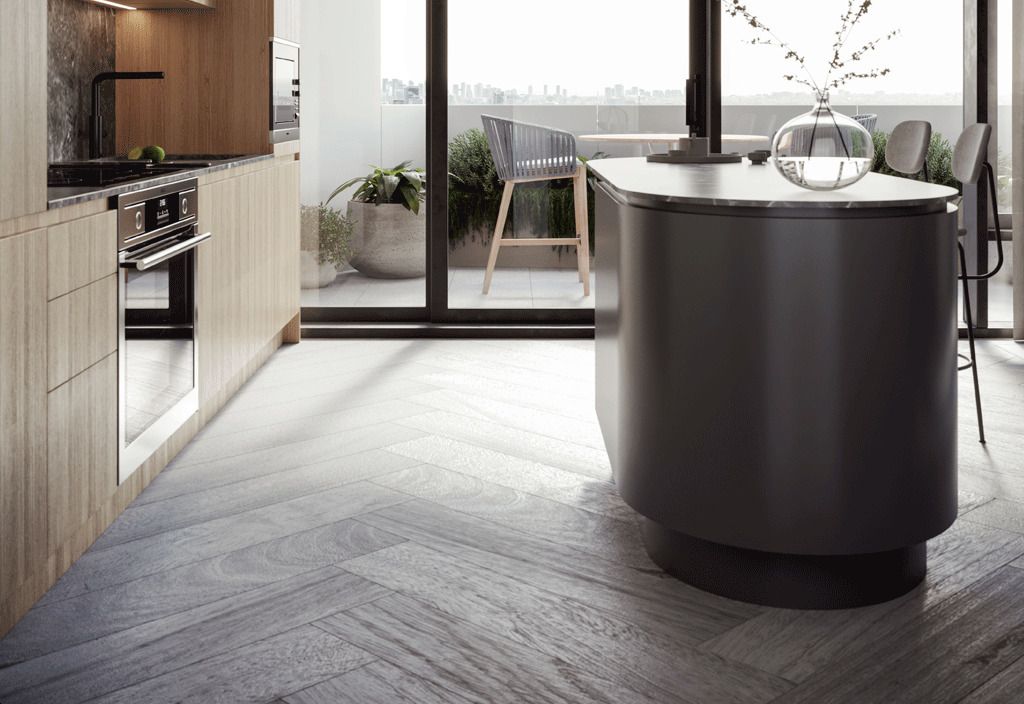 - Pill-shaped Studio Gang-designed kitchen island, as per plan; dining extension or breakfast bar, as per plan